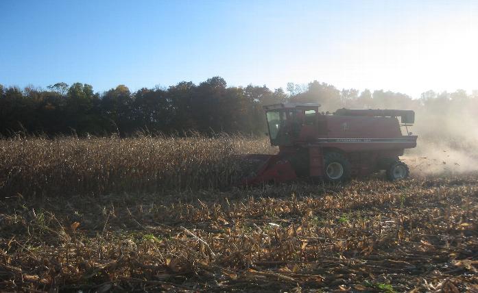Corn combining. This corn came off at 14% moisture. Very rare for Ohio!